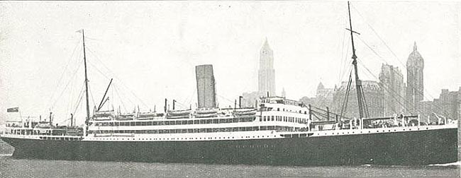 "The Orbita (15,486 grt, 569 ft. long) was completed for the Pacific Steam Navigation Co. in 1915. She was used as an auxiliary cruiser and troop transport during WW1 before she could sail on her maiden voyage to Chile in 1919. Between 1921 and 1927 she sailed for the Royal Mail Steam Packet Co. She was sold back to the PSNC in 1927. A troop transport again in 1941, this work lasted until 1950 when she was broken up."