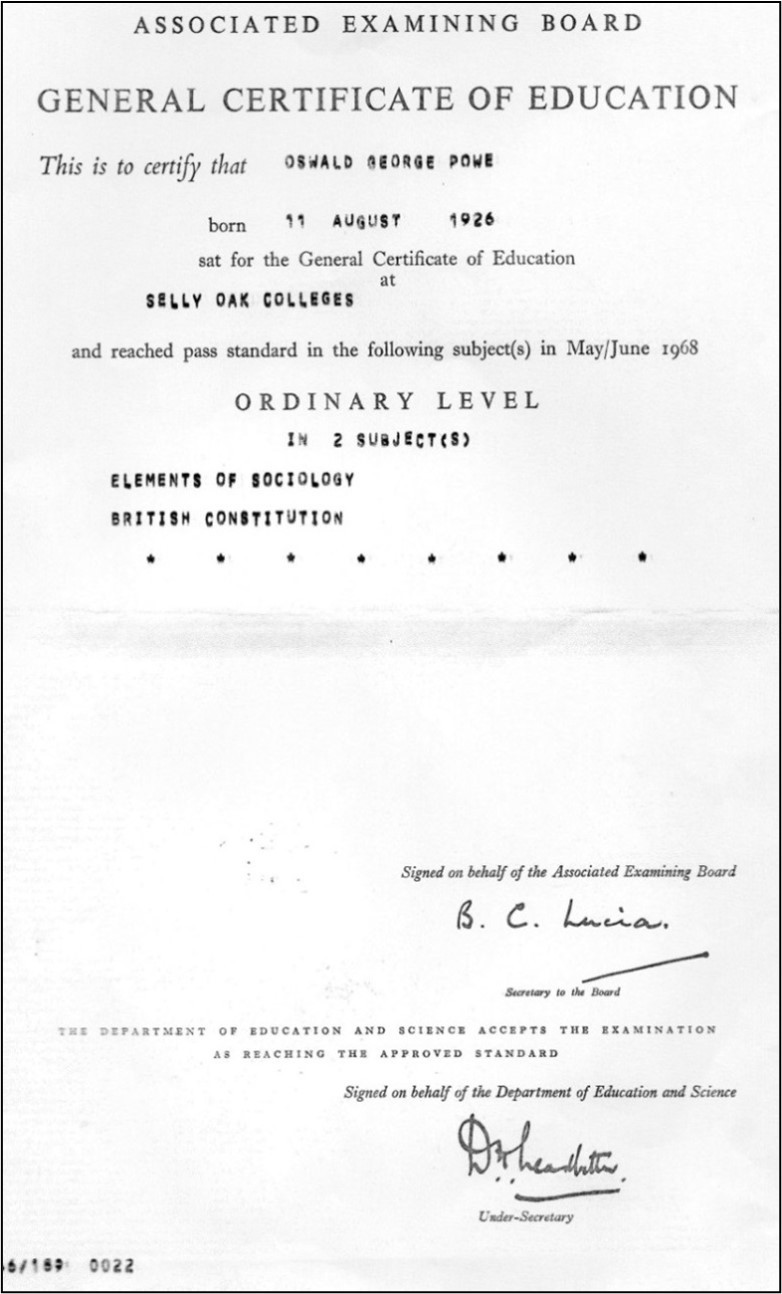 Evening classes, GCEs, and teaching certificate