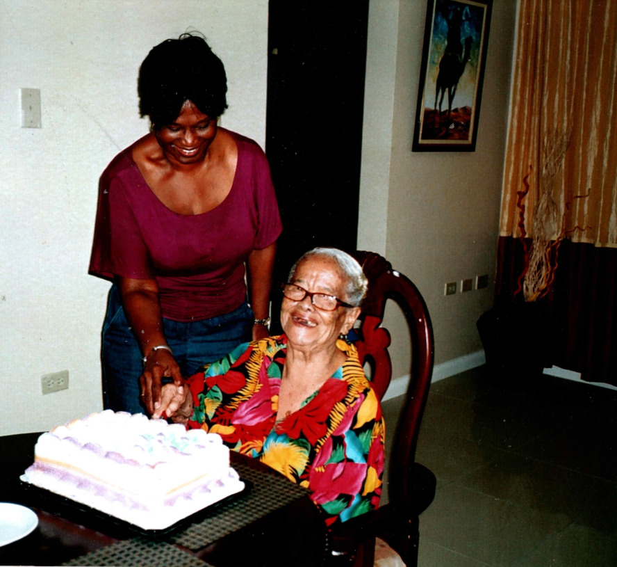 I have abiding memories of meeting two of George’s aunts on my first visit to the island. We went with Bibby and Lenny to Portland to meet Aunt Adassa. Bibby, Lenny and I held back when we approached Adassa’s house, as she did not know we were coming, and we wanted to give her a surprise. George went ahead and found her at the back of her small wooden house. We heard an amazingly loud shriek: “Boysie, is that you, Boysie?” (This was his pet name.) She was delighted to welcome him and us, and would not let go of his hand for quite a long time. She and her husband welcomed me into the house while George talked outside with other relatives. Adassa said, as though I were not there, “What can we give her? We can’t give her chicken foot!” She despatched her husband to get a live chicken, which they killed, and she cooked - expertly. I was surprised to find that her kitchen was in a separate wooden building. She was at pains to tell us that she had arranged for bottles to be half buried all round her house to keep the duppies (ghosts) away. We also met Aunt Gertie. She was a strong-looking woman with massive dreadlocks hidden in an enormous amount of swirling cotton fabric. She insisted that I feel her locks – not something I was used to doing in England! However, I complied, and her hair was so tough and wiry that I had to stop myself from speedily removing my hand. She showed us her family bible, which was a very large and old edition.